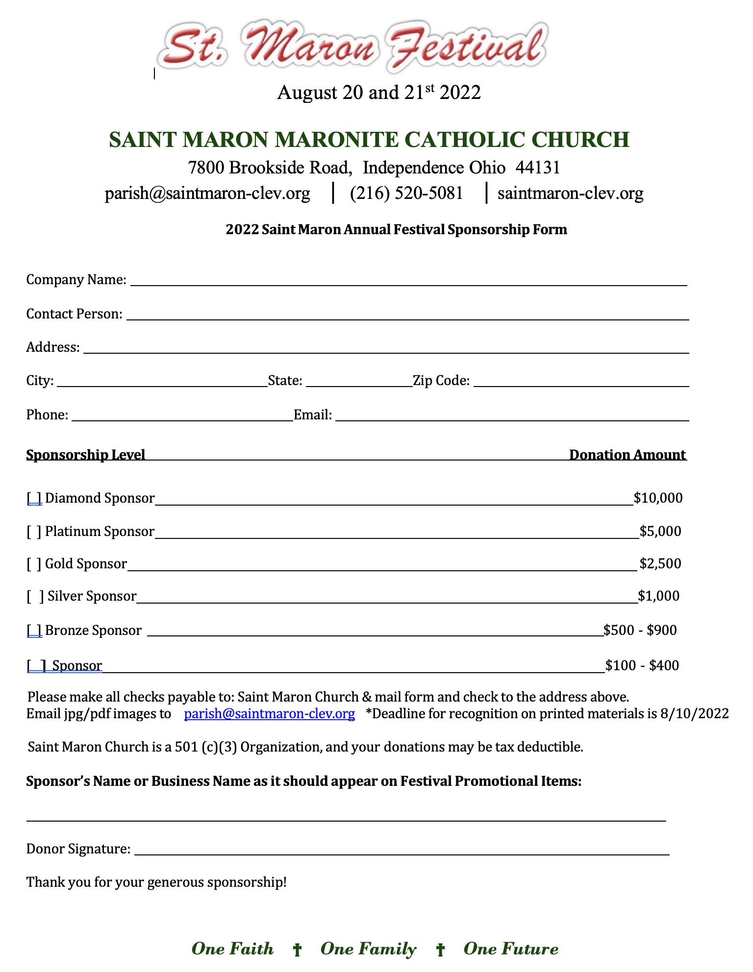 Mail-in Sponsorship Form